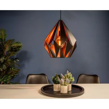 Die Eglo Pendelleuchte Carlton 1 Schwarz, Bernstein | Geeignet für E27 sorgt für eine angenehme Ausleuchtung und punktet durch modernes Design. Diese Leuchte ist speziell zur Montage an der Decke vorgesehen.