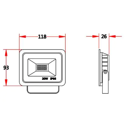 Beschreibung LED-Scheinwerfer 20W 2000lm 100D - 830 | IP66 - Symmetrisch