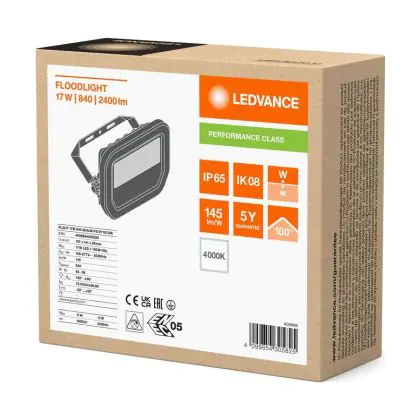 Aufgrund des geringen Energieverbrauchs von nur 17W sparen Sie mit dem LED-Scheinwerfer von Ledvance bis zu 90 % Ihrer Energie - sowie Instandhaltungskosten gegenüber einem konventionellen Modell.