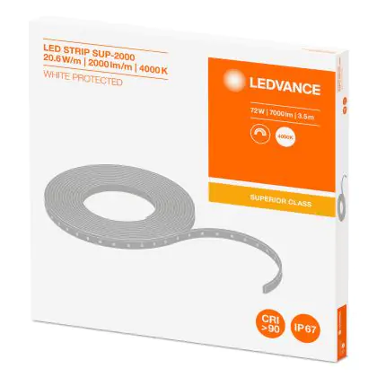 Hier finden Sie alle Vorteile von Ledvance LED-Streifen Superior 2000 72W 7000lm 24v - 940 Kaltweiß | 3.5M/13mm - Höchste Farbwiedergabe auf einen Blick: