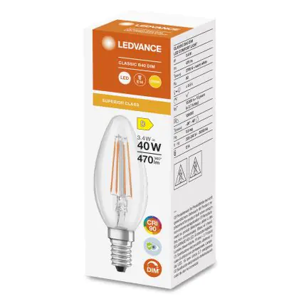 Die Ledvance Superior Classic LED E14 Kerze Fadenlampe Klar 3.4W 470lm - 927 Extra Warmweiß | Dimmbar - Höchste Farbwiedergabe ist eine effiziente E14 LED-Lampe mit Retrodesign und der perfekte Ersatz für Ihre konventionellen 40W Lampen mit E14. Zudem strahlt sie Licht in der Farbtemperatur 2700K - Extra Warmweiß aus und punktet durch eine lange Lebensdauer.