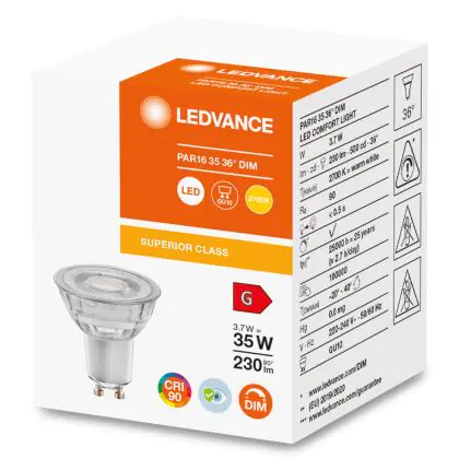 Beschreibung Ledvance Superior Reflektor LED GU10 Spot Klar 3.7W 230lm - 927 Extra Warmweiß | Dimmbar - Höchste Farbwiedergabe