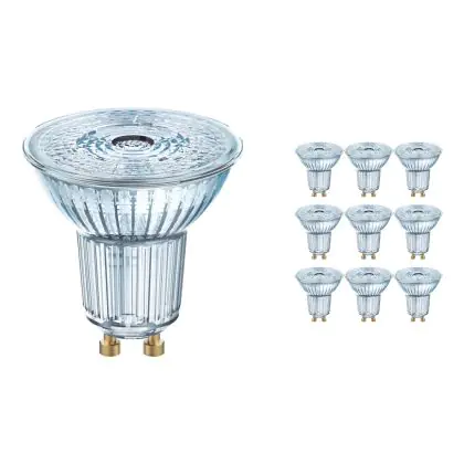 Die Mehrfachpackung 10x Ledvance SUPERIOR LED-Spot Reflektor GU10 PAR16 3.4W 230lm 36D - 930 Warmweiß | Höchste Farbwiedergabe - Dimmbar - Ersatz für 35W ist eine effiziente GU10 LED-Lampe und der perfekte Ersatz für Ihre konventionelle Halogenlampe mit 35W und einem GU10-Sockel, bei welchem die zwei Stifte einen Abstand von 10 mm zueinander haben. Zudem strahlt das Produkt Licht in der Farbtemperatur 3000K - Warmweiß aus und punktet durch eine lange Lebensdauer.