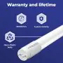 Diese LED-Röhre wird mit 11 Watt betrieben und strahlt 1575 lm aus. Daraus ergibt sich eine hohe Lumeneffizienz von lm/W. Sie ist somit deutlich effizienter als herkömmliche Leuchtstoffröhren, die ungefähr mit 80 lm/W daherkommen. Dies wirkt sich positiv auf Ihre Energiekosten aus!