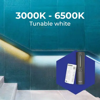 3. Abstimmbares Weiß: Das weiße Licht kann jeden Wert auf der aufgeführten Kelvin-Skala annehmen, z. B. 2.200 Kelvin bis 6.500 Kelvin.