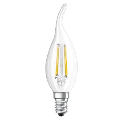Die Osram LED Superstar E14 Gebogen-tip candle Fadenlampe Klar 3.4W 470lm - 927 Extra Warmweiß | Höchste Farbwiedergabe - Dimmbar - Ersatz Für 40W ist eine effiziente E14 LED-Lampe mit Retrodesign und der perfekte Ersatz für Ihre konventionellen 40W Lampen mit E14. Zudem strahlt sie Licht in der Farbtemperatur 2700K - Extra Warmweiß aus und punktet durch eine lange Lebensdauer.
