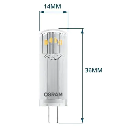 Die Osram Parathom LED Pin G4 1.8W 200lm - 827 Extra Warmweiß | Ersatz für 20W ist eine effiziente G4 LED-Lampe und der perfekte Ersatz für Ihre konventionelle Halogenlampe mit 20W und einem G4-Sockel. Die Stifte haben einen Abstand von 4 mm. Zudem strahlt das Produkt Licht in der Farbtemperatur 2700K - Extra Warmweiß aus und punktet durch eine lange Lebensdauer.