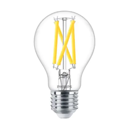 Die Philips Master LED E27 Birne Fadenlampe Klar 7.2W 1055lm - 922-927 Dim To Warm | Höchste Farbwiedergabe - Dimmbar - Ersatz Für 75W ist eine effiziente E27 LED-Lampe mit Retrodesign und der perfekte Ersatz für Ihre konventionellen 75W Lampen mit E27. Zudem strahlt sie Licht in der Farbtemperatur 2200K - 2700K Dim To Warm aus und punktet durch eine lange Lebensdauer.