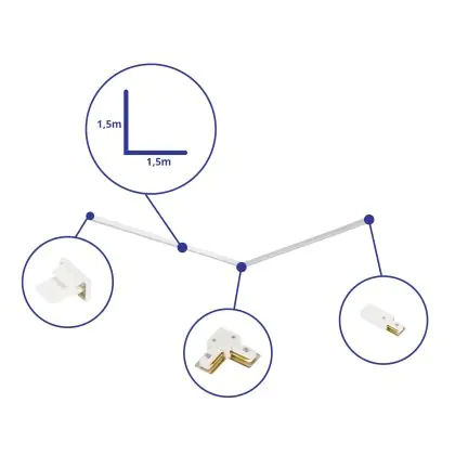 Beschreibung Rail Set 1-Phasen L 1,5 x 1,5 Meter Weiß | incl.Abschlusskappe, Stromanschluss und L -Verbinder